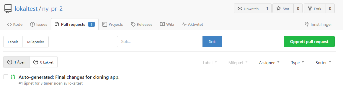 In order for the copied app to work there is some changes in the source code. These changes has automatically been added as a pull request against your repository. To navigate to the repo click the profile-icon in the top right corner and choose “Åpne repository”Open repository