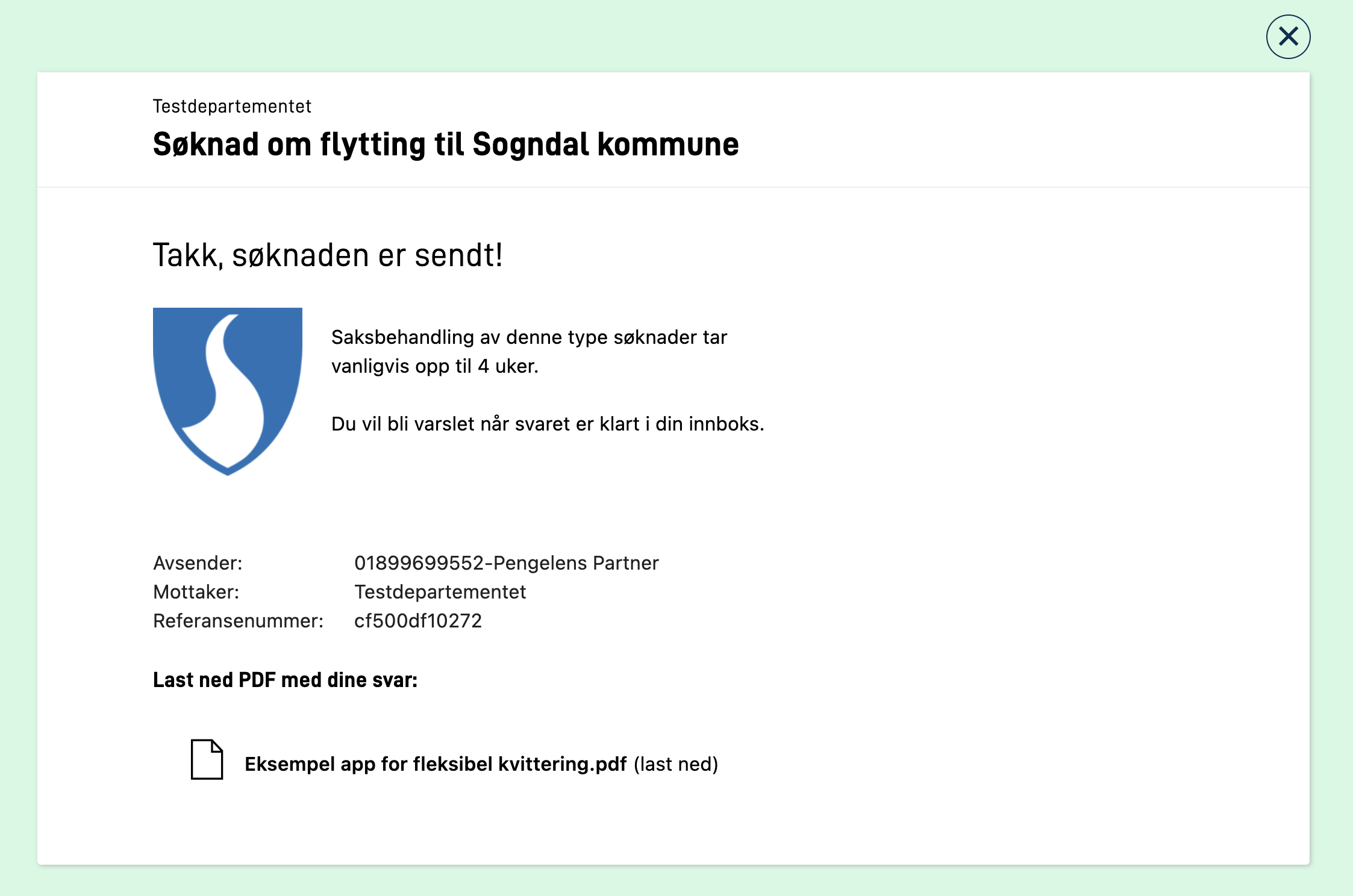 "value": "Søknad om flytting til Sogndal kommune"