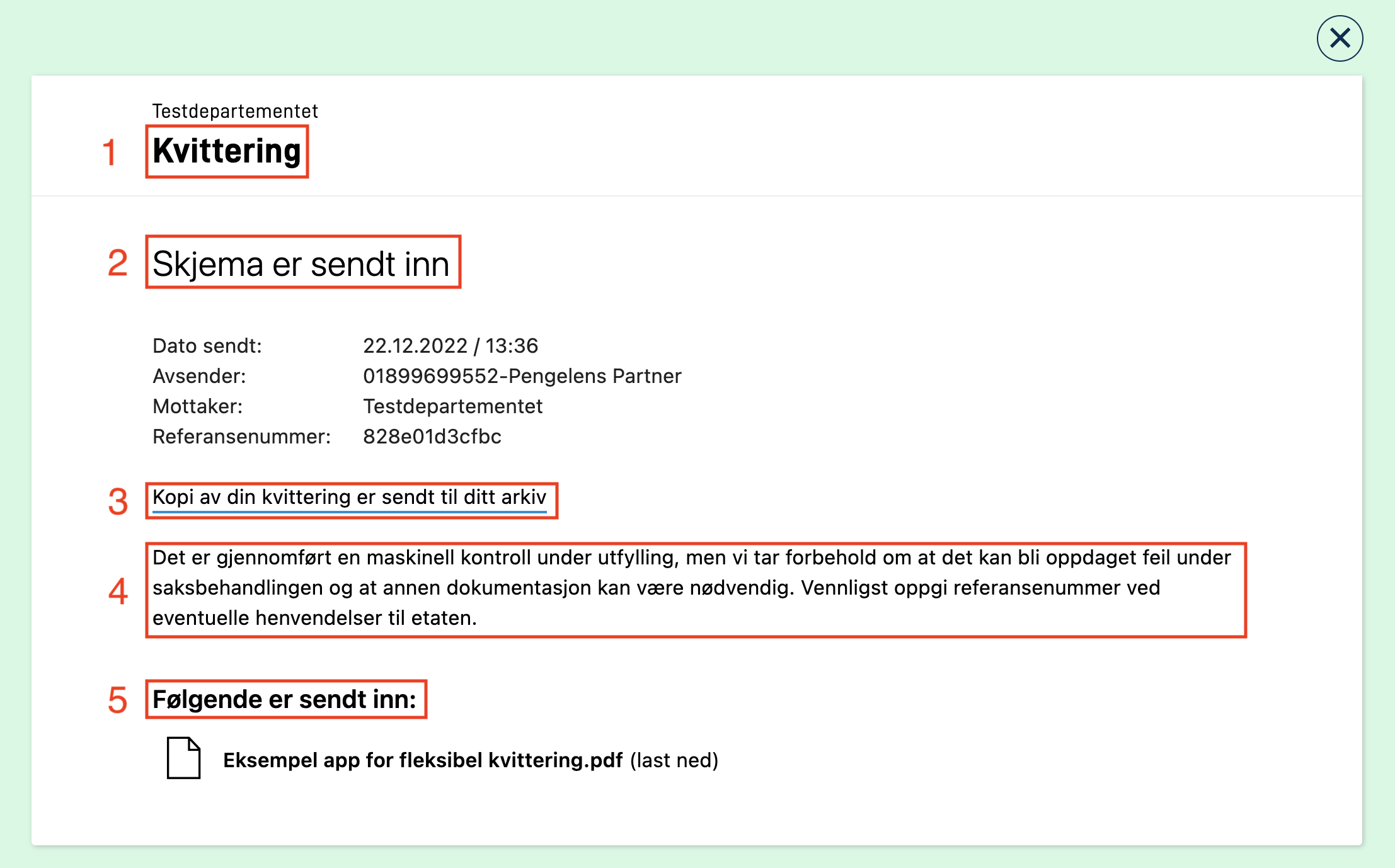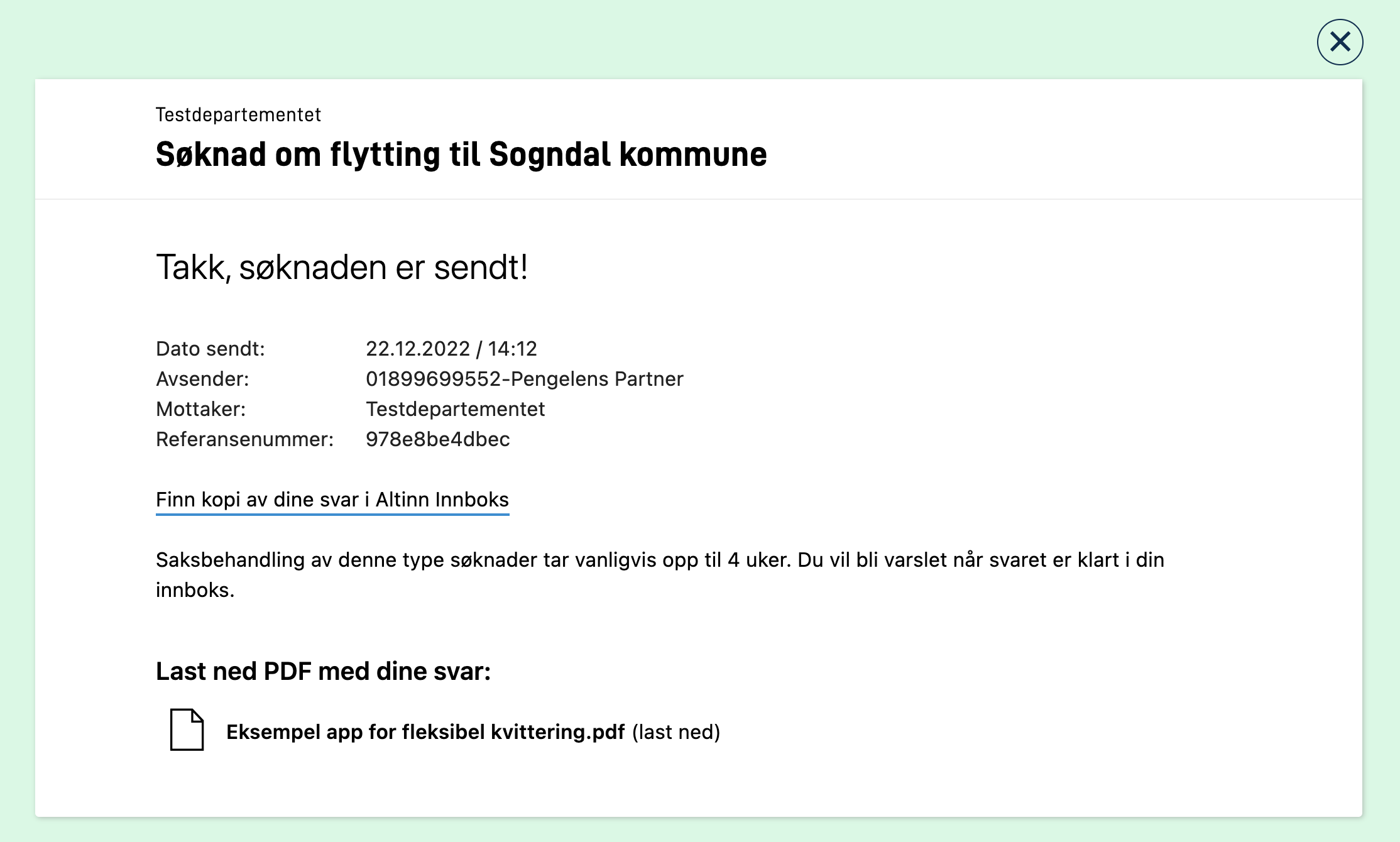 Note that if you change the value of the text key receipt.subtitle the url will still point to Altinn Inbox.
