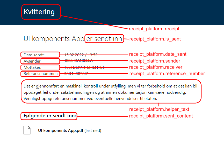 These modified texts are only applicable to the platform receipt and will not have any effect on the receipt that is presented to a user after they have completed a form. See receipt for information on how to customize both texts and the layout of this receipt.