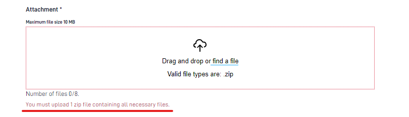 This default error message will be displayed as “You need to upload 1 attachement(s) to continue'.