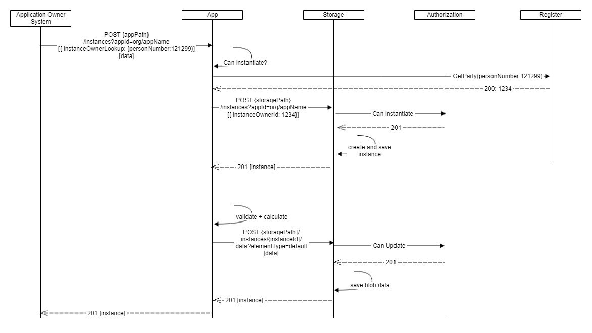 An instance can be regarded as an envelope or folder where data is collected and exchanged between the application user and owner. The instance document is a way for Altinn and external parties to track the state of one specific data exchange. How long an instance lives and how many interactions there are between the application owner and user will vary from one app to another. Advanced apps will have their own documentation.