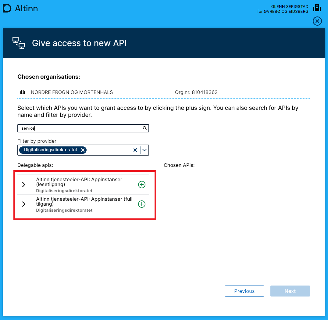 - Altinn Service Owner API: App Instances (full access) - provides access to scopes for both read and write.