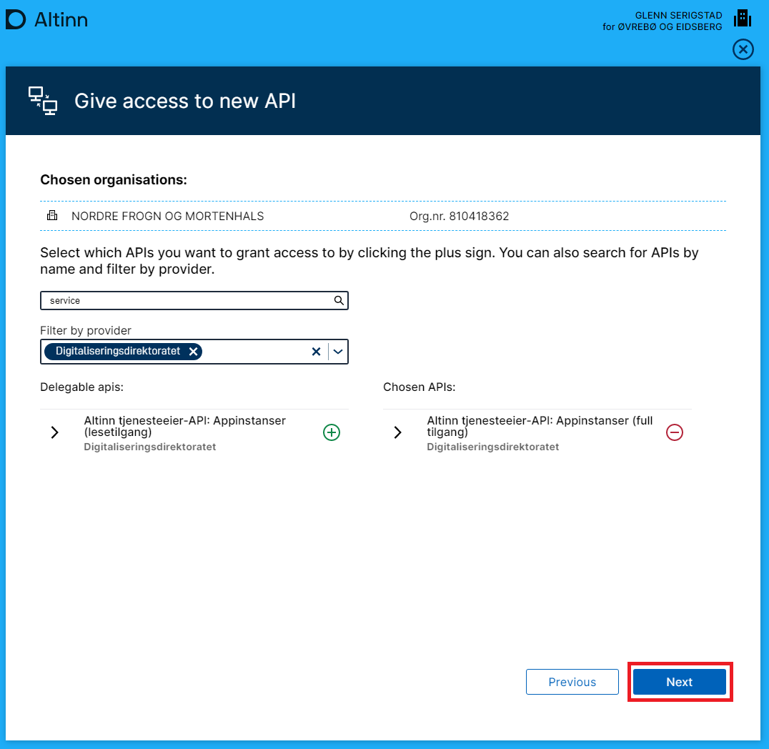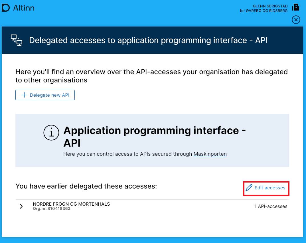 Certain service owners want a subcontractor to be able to act on their behalf, e.g. suppliers of specialist systems. To achieve that, these API accesses must be delegated to the provider using Altinn.
