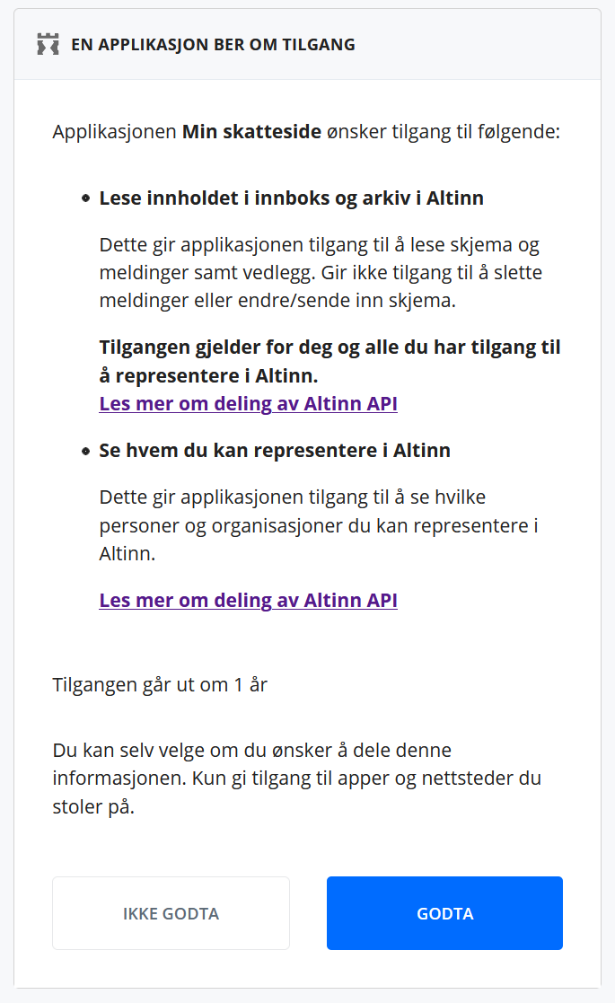 Bildet nedenfor viser hvordan sluttbruker må bekrefte tilgangen.