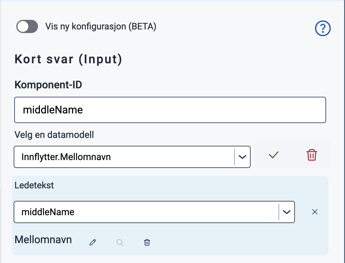 In the example below, the setup for the “Mellomnavn”-Component is shown.