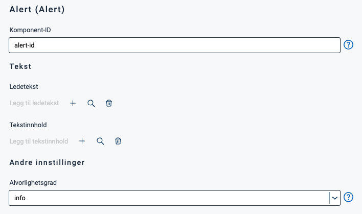 textResourceBindings.body): Alert content. - Alvorlighetsgrad (