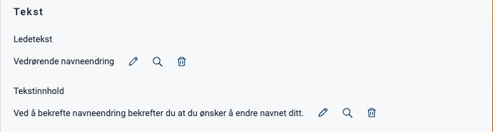 "body": "Ved å bekrefte navneendring bekrefter du at du ønsker å endre navnet ditt."