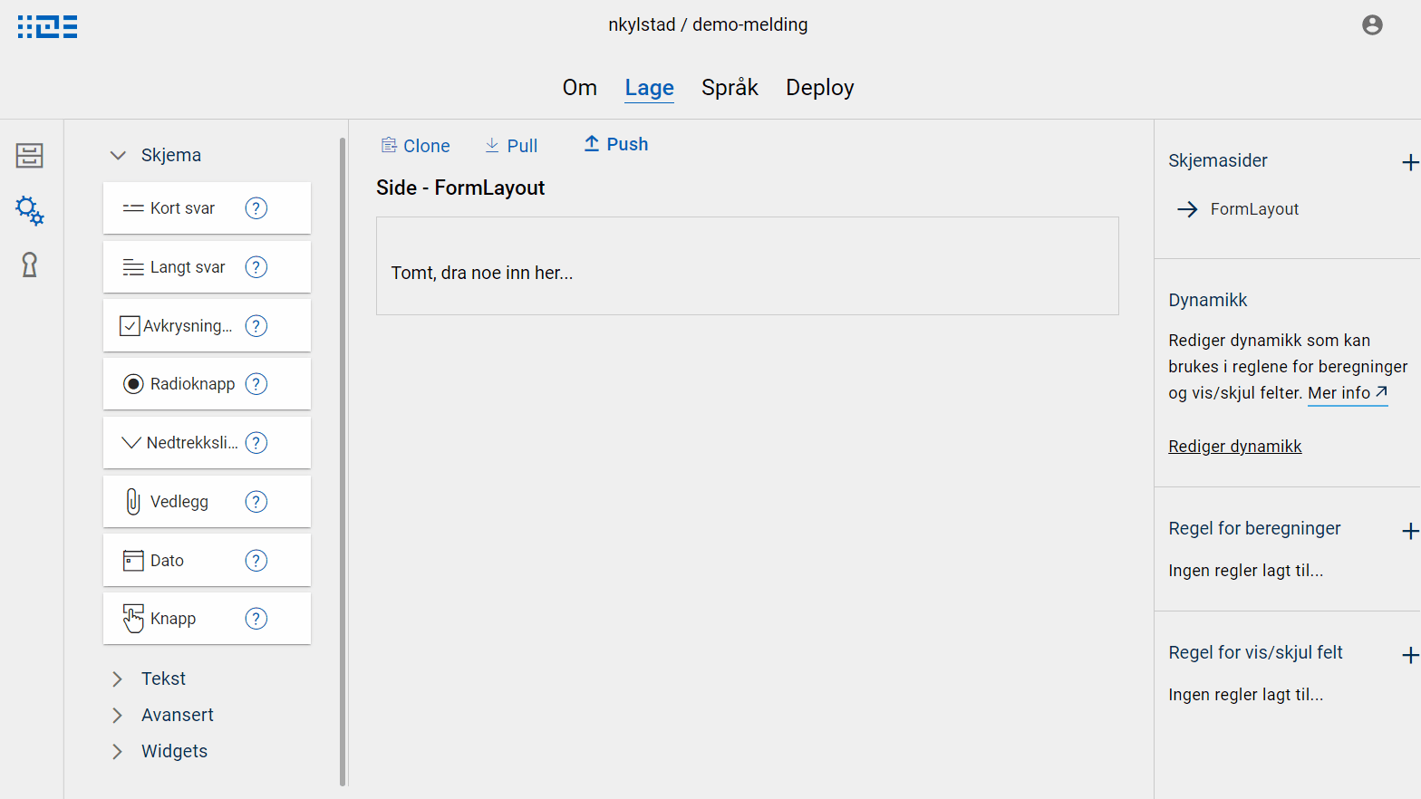 Eventually we will offer a collection of various widgets, these will appear automatically in the menu to the left in the form editor in Altinn Studio. The list is updated as new widgets are added. As of today the following widgets are available: