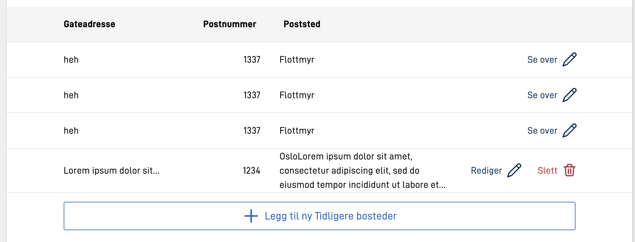 Items in repeating groups that are not in editing mode are shown as a table. This table view has limited space for long prompts. A shorter prompt for table views can be set by defining tableTitle in textResourceBindings for each component in the repeating group.