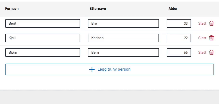 "tableHeaders": ["fornavn", "etternavn", "alder"],