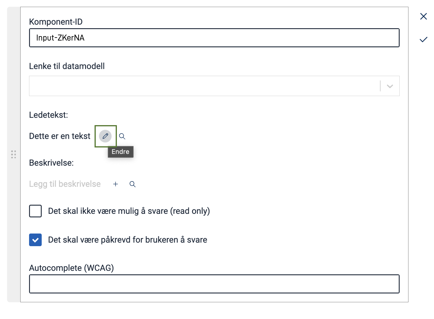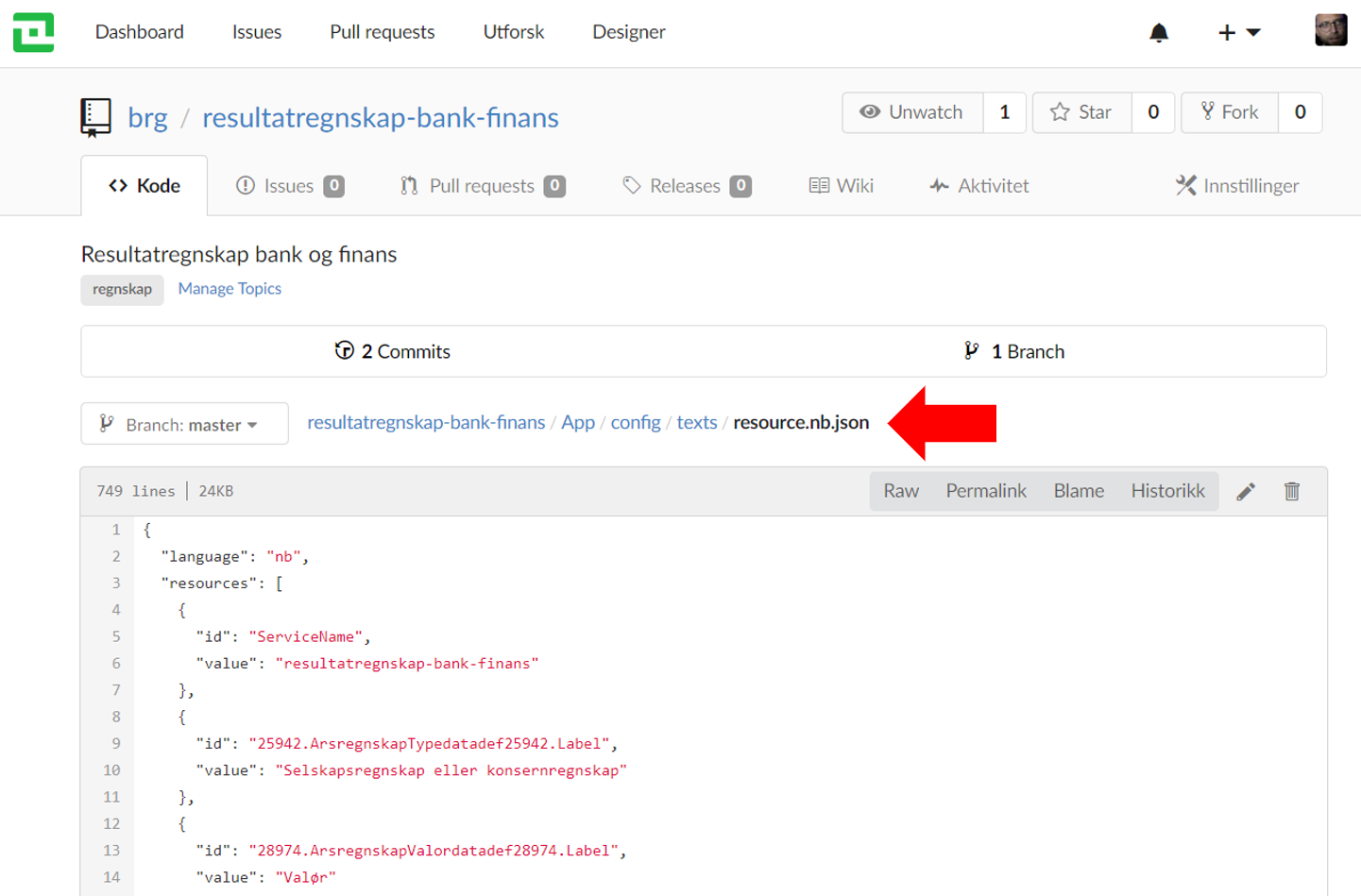 Texts can be edited locally, directly in the JSON-files, or via the Altinn Studio text editor.