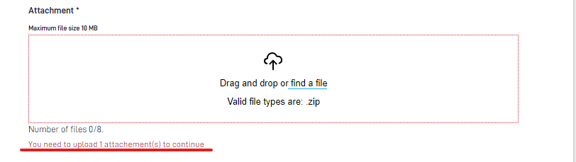 Default texts that have a number need to be handled in a different way. For example file_uploader_validation_error displays an error message if it is required to add at least one attachment. This default error message will be displayed as “You need to upload 1 attachement(s) to continue'.
