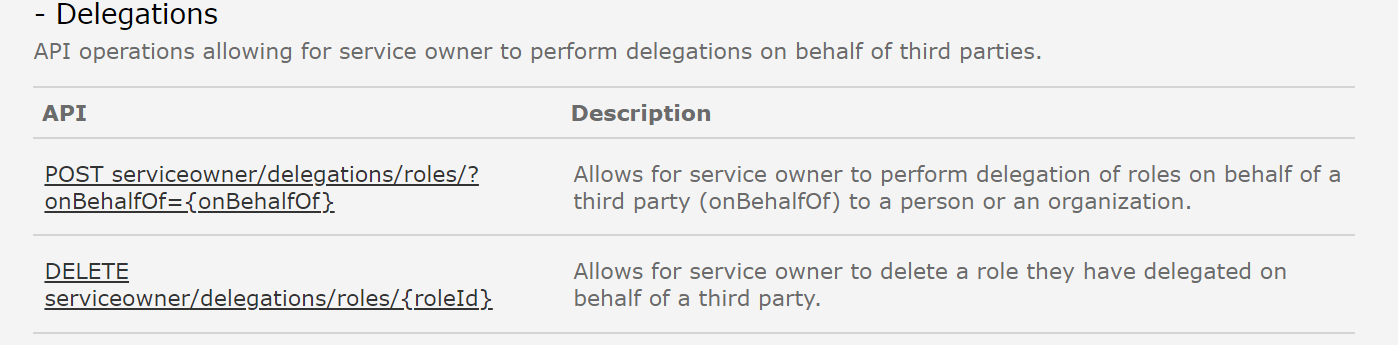 - Dette APIet påvirkes av arbeid som skjer i forbindelse med Ny brukerflate for tilgangsstyring for virksomheter