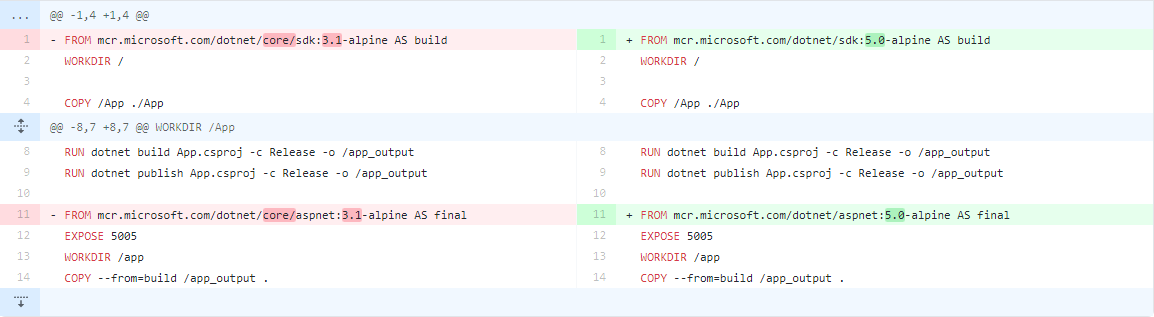 FROM mcr.microsoft.com/dotnet/aspnet:5.0-alpine AS finalThe changes in the file should match the image below: