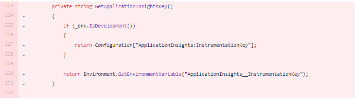 Remove add application insights Remove private method for retrieving the key for Application Insights.