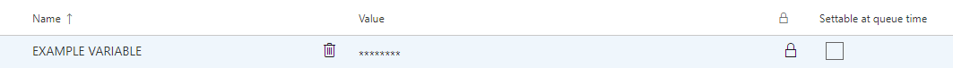 All that is needed in order for a variable to be secured in the pipeline is click on the lock icon at the right hand side.