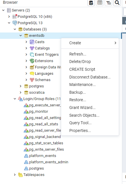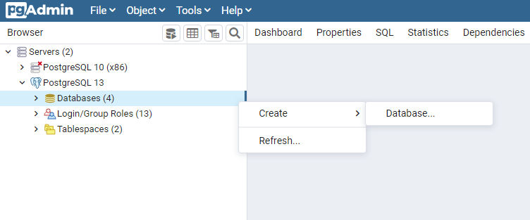 Open pgAdmin 4. We will be working on the PostgreSQL 13 server.