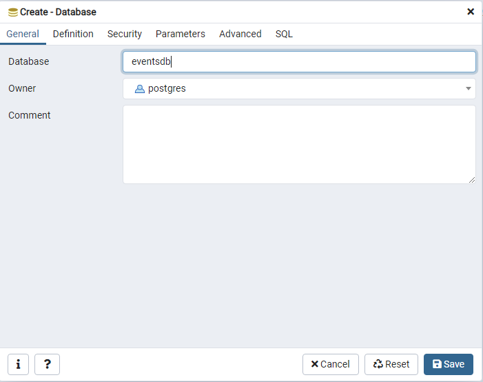 eventsdband click Save.