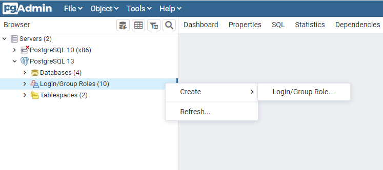 Right click on Login/Group Roles , select Create and Login/Group Roles.