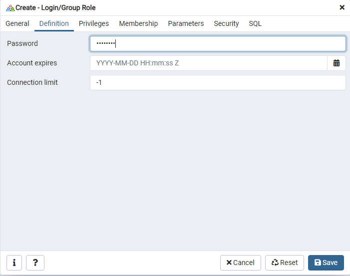 Step 2 Navigate to the Definition tab and insert password: