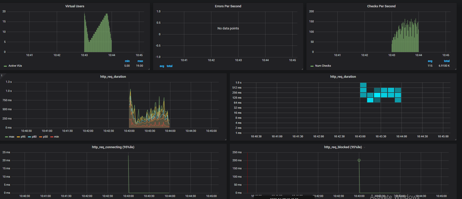 Once the above script it run, one could see results in grafana similar to the below image.Grafana darsboard
