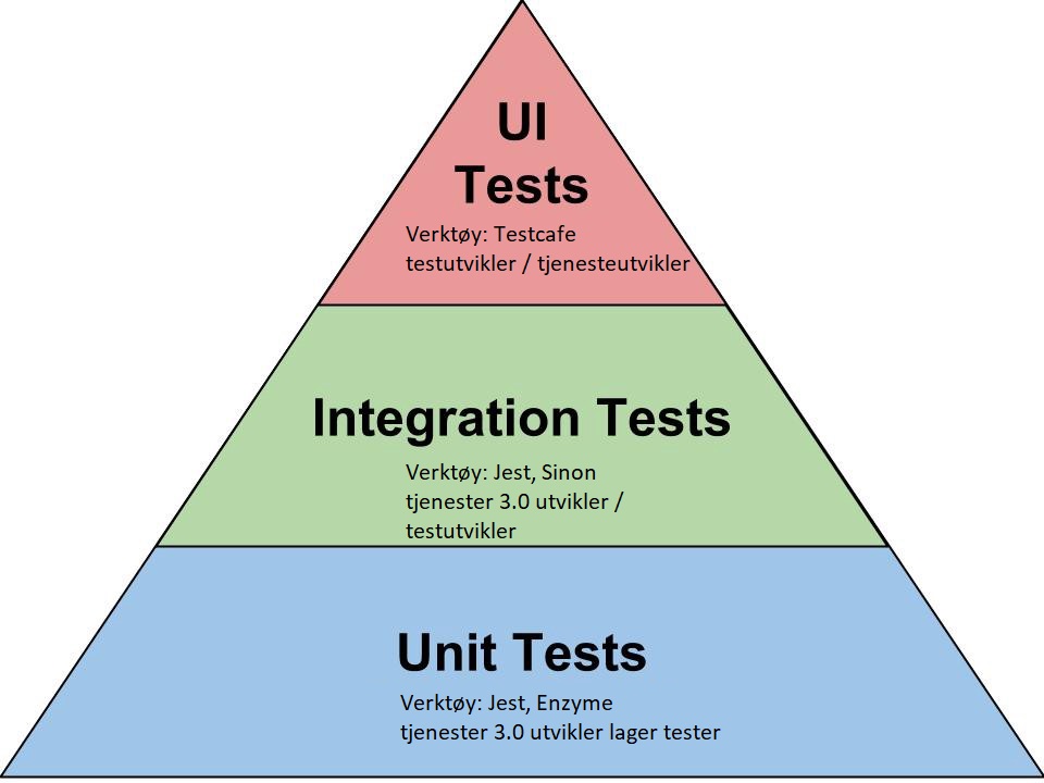 Testing of Altinn Studio is to be tested automatically at the unit and integration levels of testing. Unit testing of the system involves, for example, the testing of individual javascript functions, and individual pieces of logic relating to react/UI components. At the integrasion level of test, API’s and smaller modules are typically tested: Effective unit and integration testing demands good testing frameworks that tjenester 3.0 developrs can easily pick up and use, and that can be easily integrated in the current codebase and the current build toolchain.