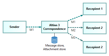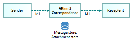 The basic messaging pattern supported by Altinn Correspondence is one-to-one messaging from one sender to one recipient.
