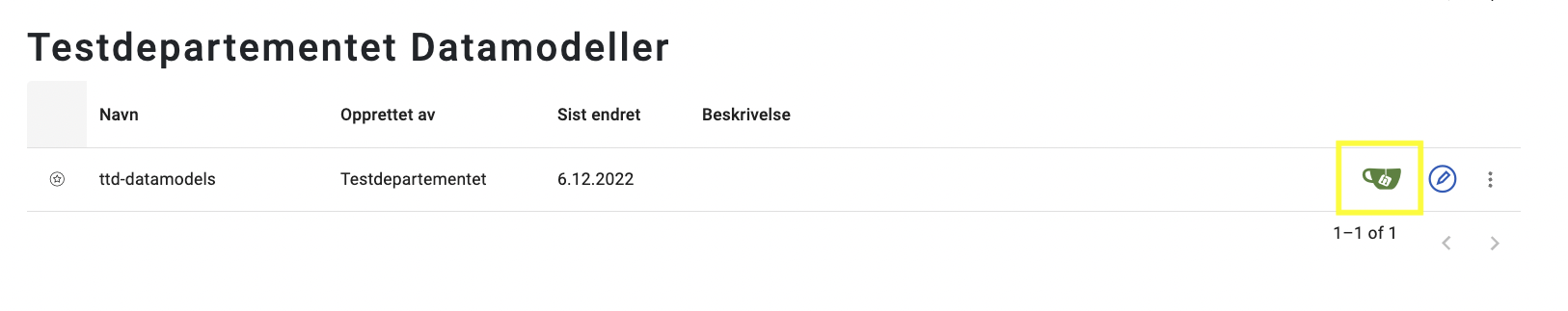 Du finner det ved å enten søke det opp i dashboardet til Altinn Studio, eller se i listen Datamodeller på dashboardet, og klikke på den grønne repository lenken.