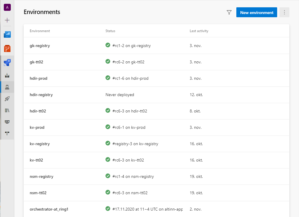 For altinn studio we currently have 3 environments. Staging, dev and production.