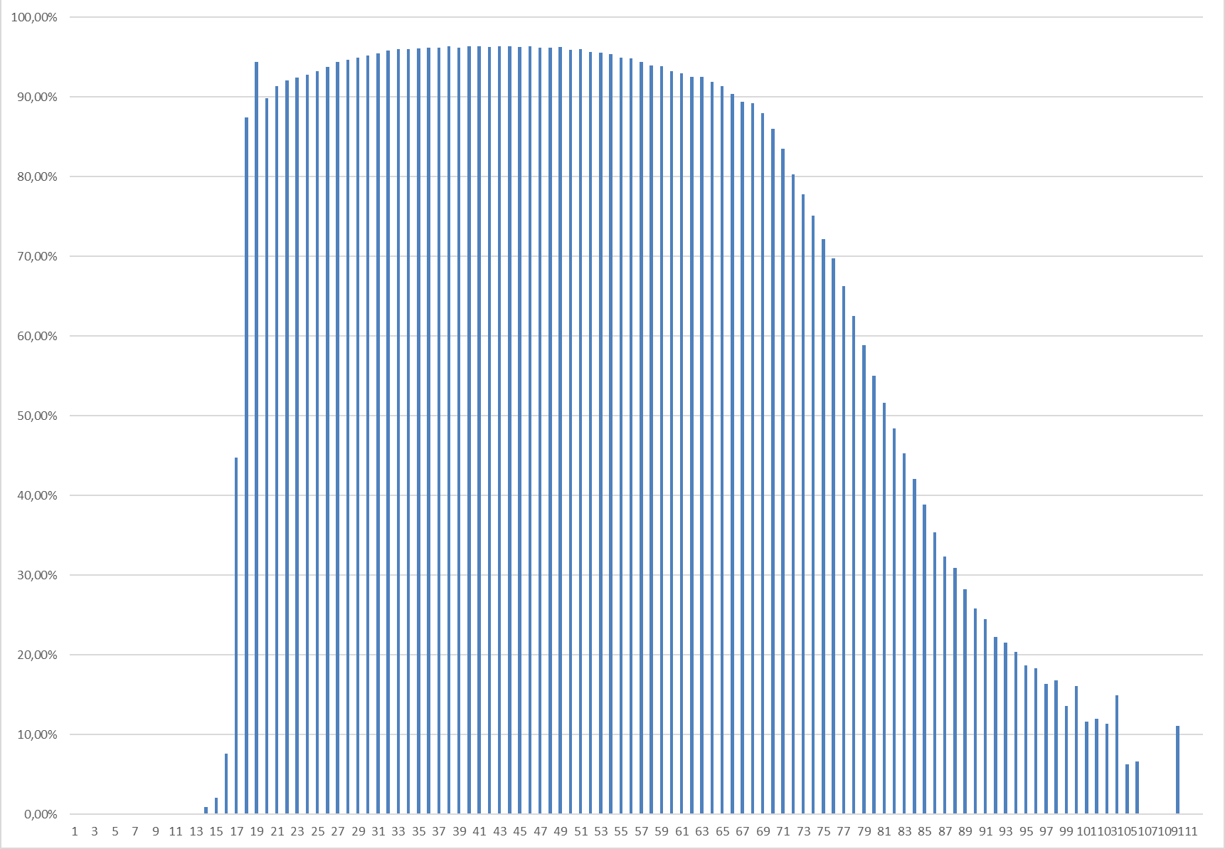 Altinn have users in every age group and for most age groups more than 90% of the citizens use Altinn every year.